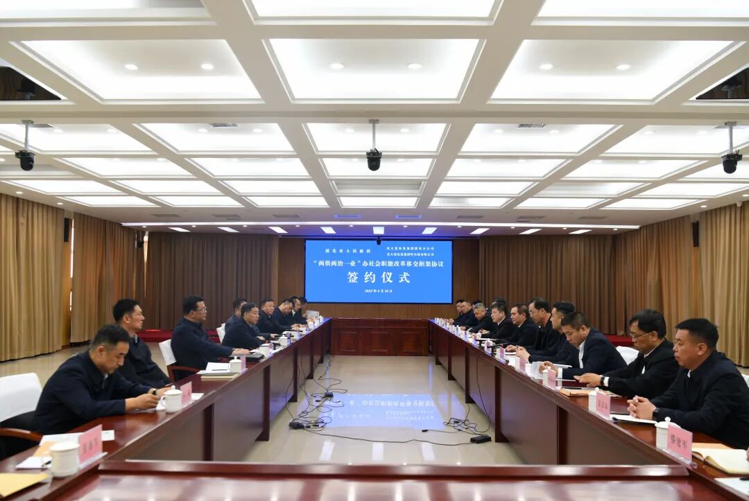 4月30日,市政府与北大荒农垦集团绥化分公司、哈尔滨有限公司举行签约仪式,深入贯彻落实党中央、国务院和省委、省政府部署要求,全力做好“两供两治一业”办社会职能改革移交工作,推动垦地协作向更深层次、更广领域迈进。市委副书记、市长陈立军出席签约座谈。