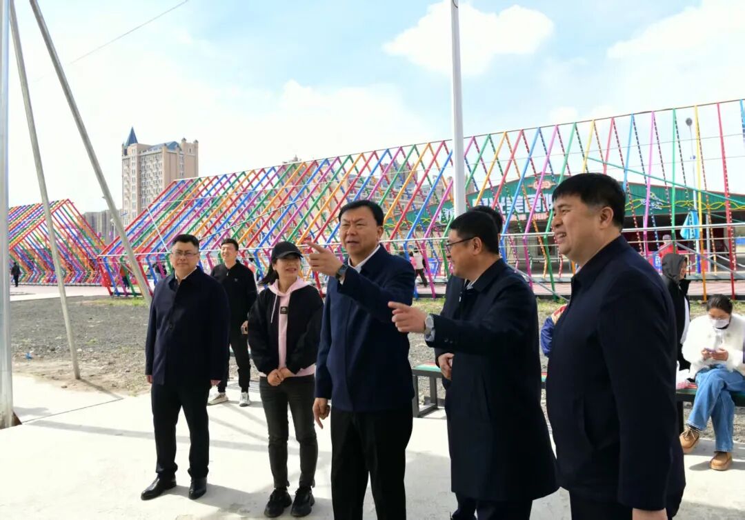 在中心城区欢乐谷,张宝伟调研文旅产业发展、文旅项目建设等工作,检查景区景点安全。