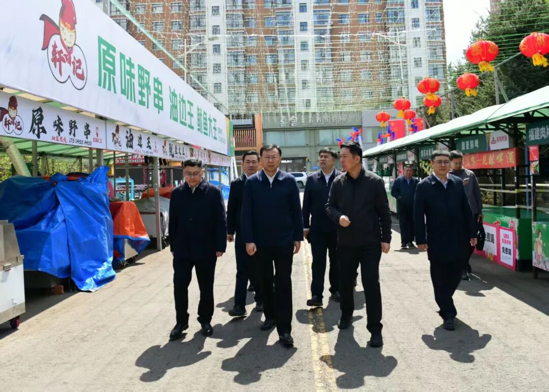 在府乾广场美食一条街,张宝伟检查露天市场管理情况。他强调,要建立常态化管理机制,持续抓好露天市场管理,营造一个规范、整洁、有序的市场环境。要创新消费场景,积极发展地摊经济、夜市经济,充分释放消费活力。要加强食品安全监管,切实守护群众“舌尖上的安全”。
