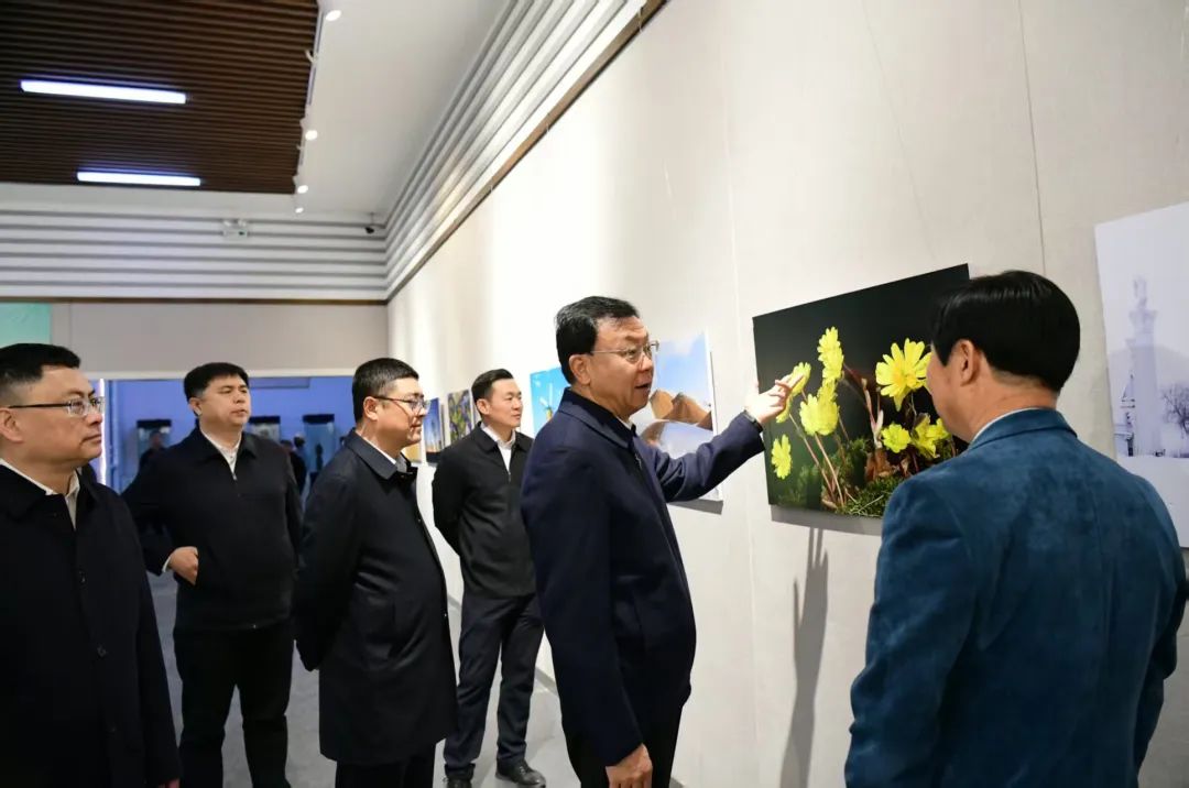 在绥化市美术馆,张宝伟参观“心绥所愿诗画田园”随画(绥化)春天摄影展,了解绥化市第三届春服(福)主题活动开展情况。