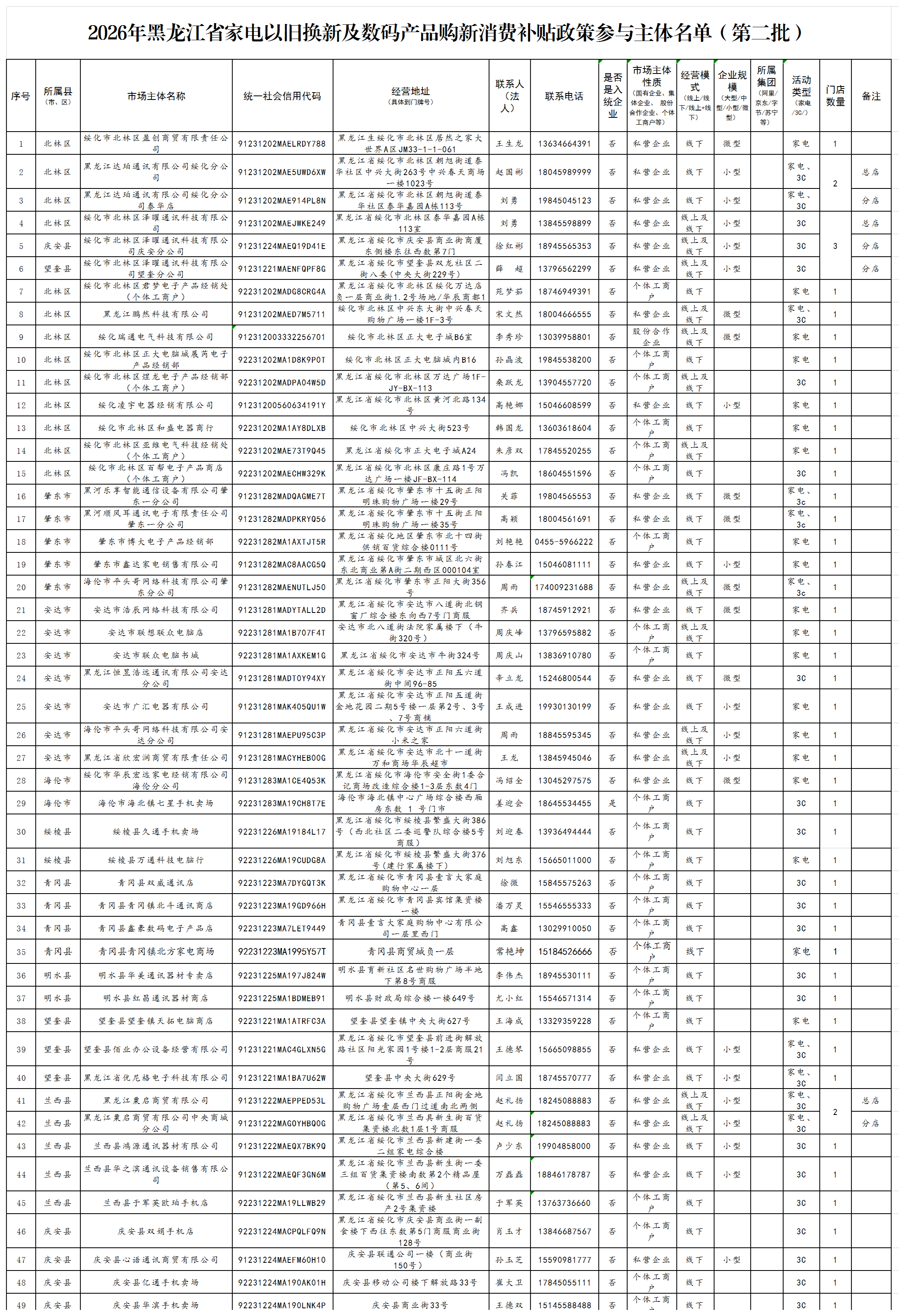 附件:2026年黑龙江省家电以旧换新及数码产品购新消费补贴政策参与主体白名单(第二批)