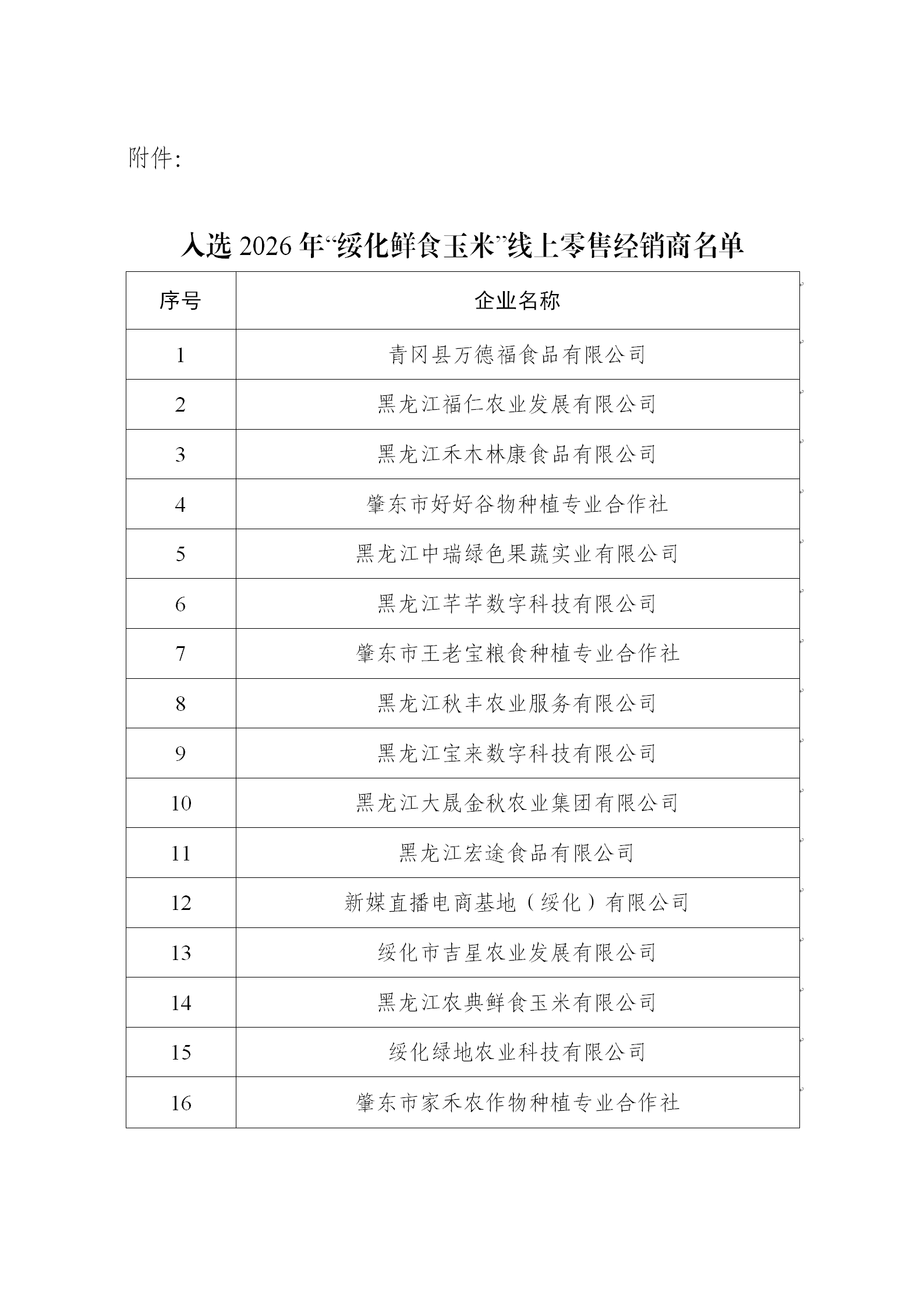 附件:入选2026年“绥化鲜食玉米”线上零售经销商名单
