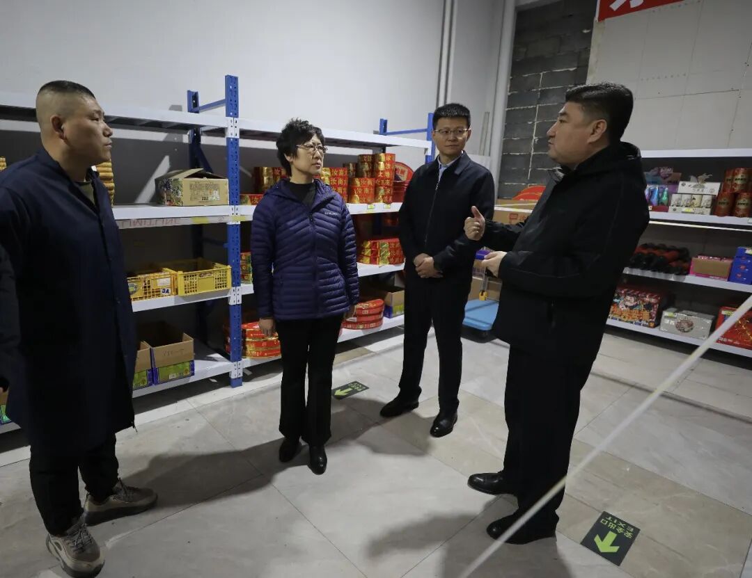 在天使烟花爆竹商店,单伟红详细查看商户安全生产责任制落实情况,认真询问烟花爆竹储存、运输、销售各环节安全管控措施,听取相关工作汇报。